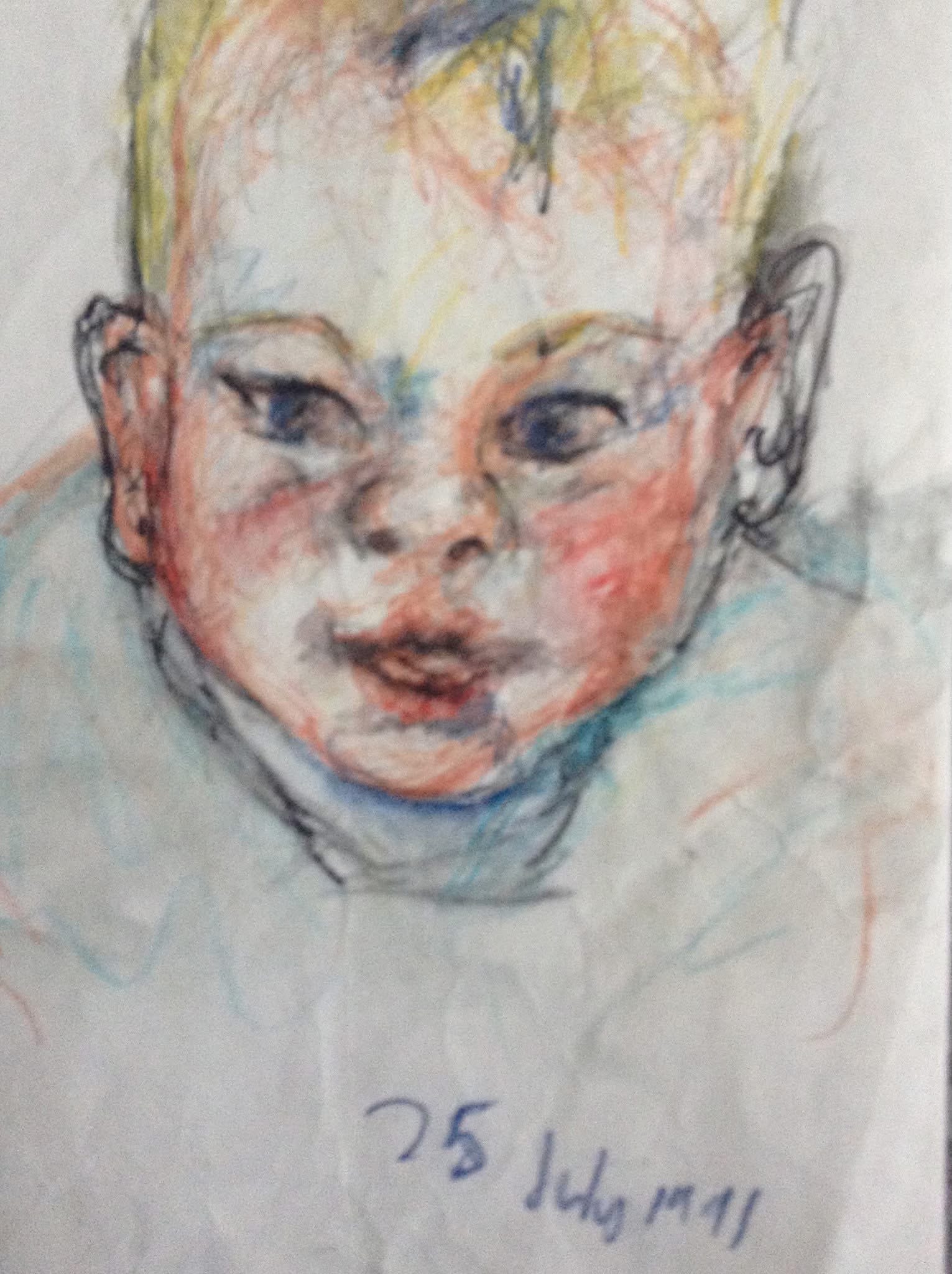 I watch the news on tv. Rumblings of war now emanate from Yugoslavia. One conflict replaces another in the media. War is predominant in my mind again as I cradle you, my sleeping boy, my golden-haired-one. My stomach swells with your newly formed brother, and as you doze in my arms, he kicks both of us to announce himself: I’m here too.